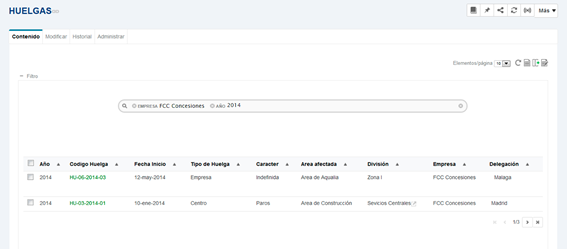 They will have fields to help them filter documents by the various criteria or metadata. criteria or metadata. The following screenshot shows a view of a document type query document type query view "strike" in which the users of one of our clients filter their results using the of our clients filter their results using the search engine that receives as search criteria any data as search criteria any data related to the strike event.