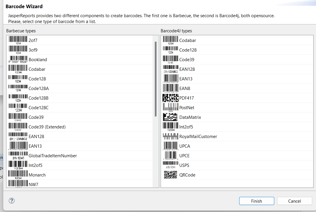 From Jasper in the Palette panel select the Barcode option. Then drag the code to the desired location within the template.