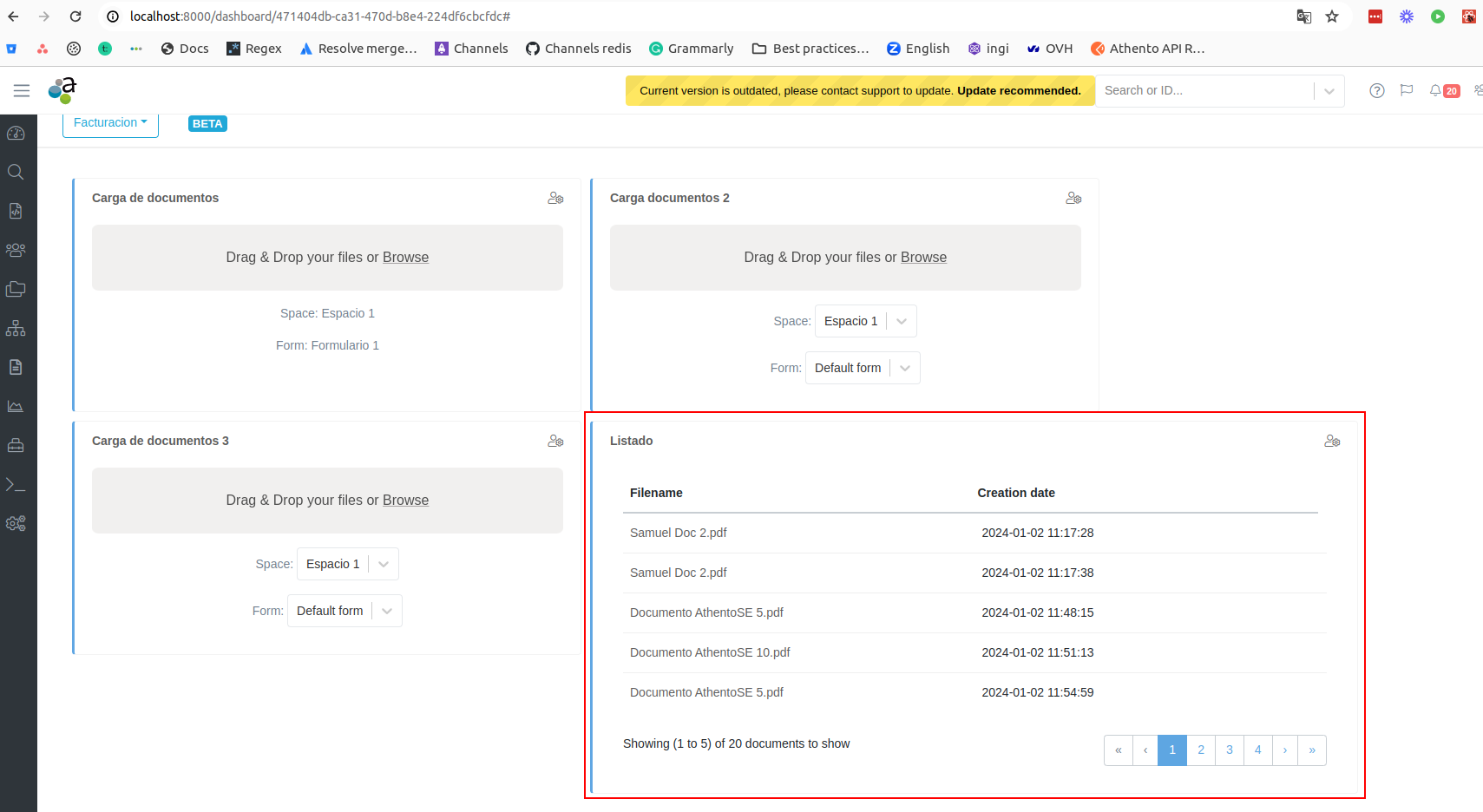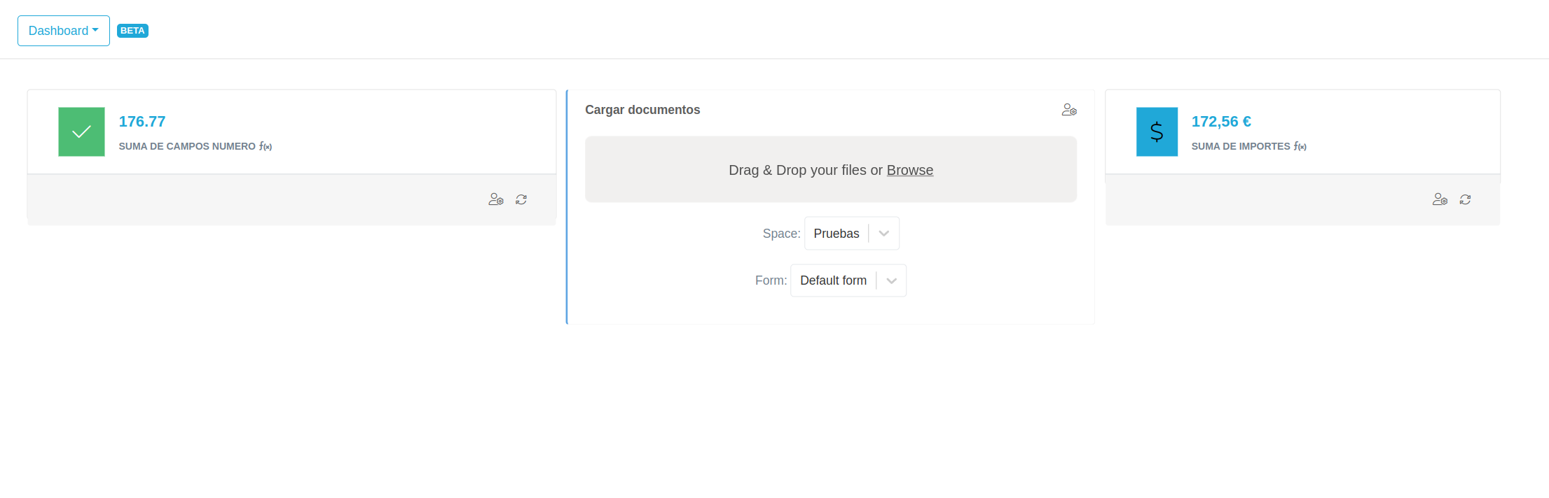 document upload widgets: They are used to quickly upload documents from the dashboard. Two parameters can be specified for these widgets: