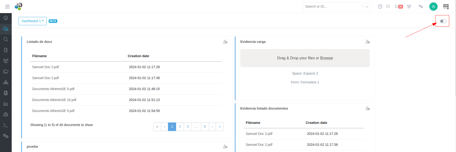 Athento allows the creation of multiple dashboards within a team. To activate the new dashboards you must check the "Show dashboard dynamic items" checkbox from the advanced administration in the team configuration.