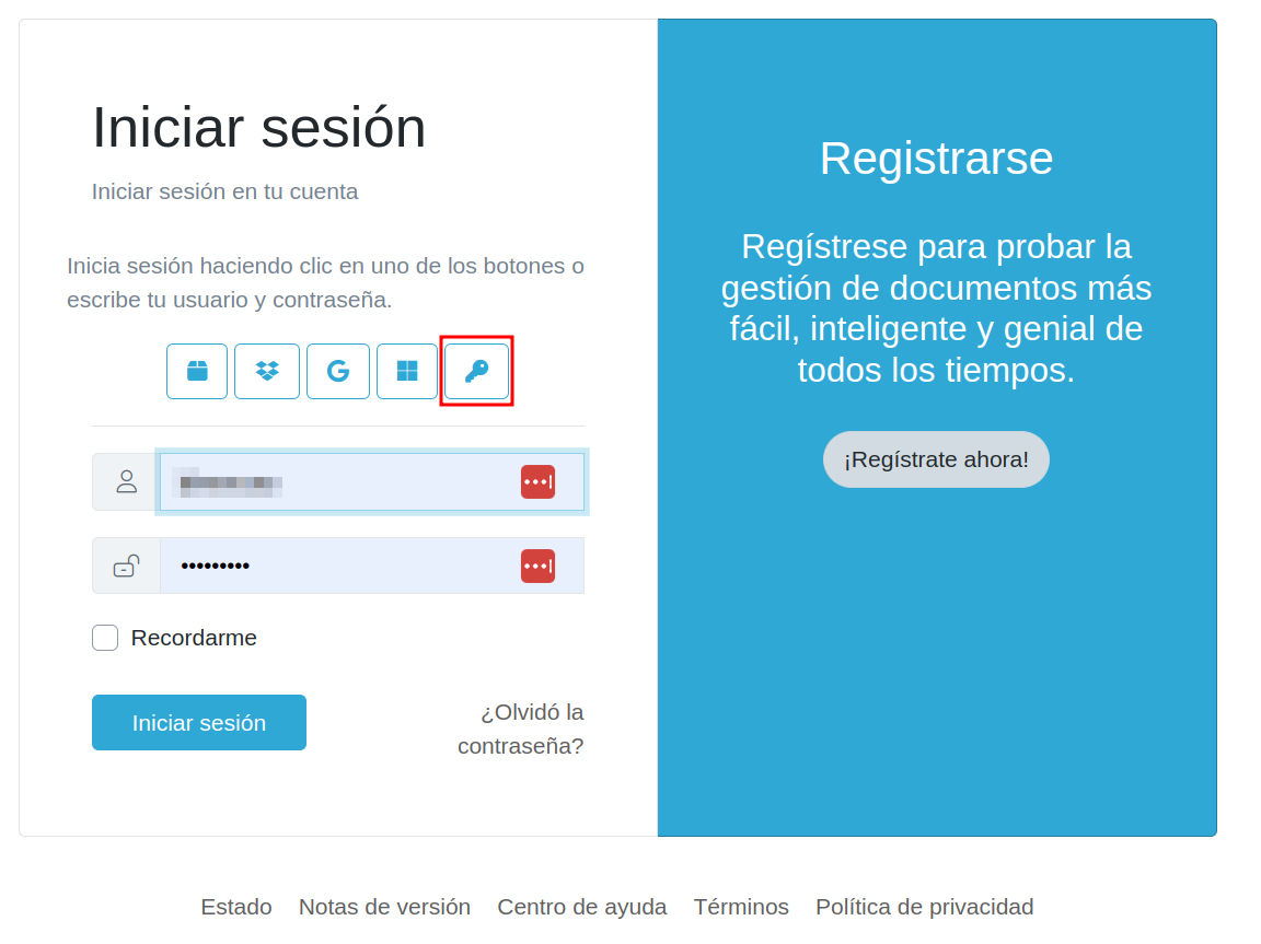 Once the security key has been registered, to authenticate, simply click on the button with a key icon in the login form and follow the steps indicated by the browser.