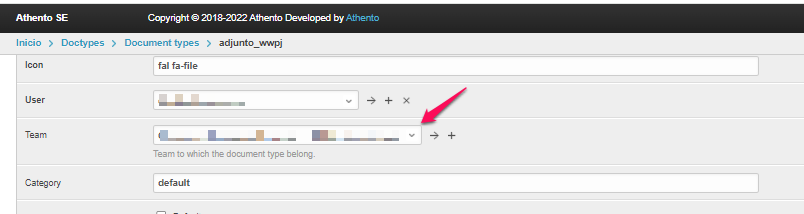 You must enter the advanced administration on Document types, search for the form and enter it, and adjust it to the new team.