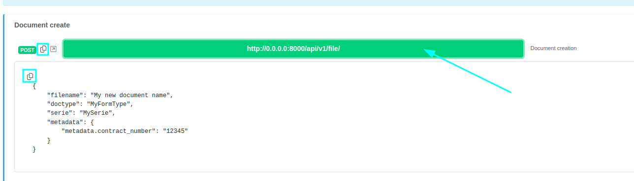 We can copy the URL to use it, or if we click on the box of any of the endpoints, it will show us a sample request that we can also copy by clicking on the clipboard icon.