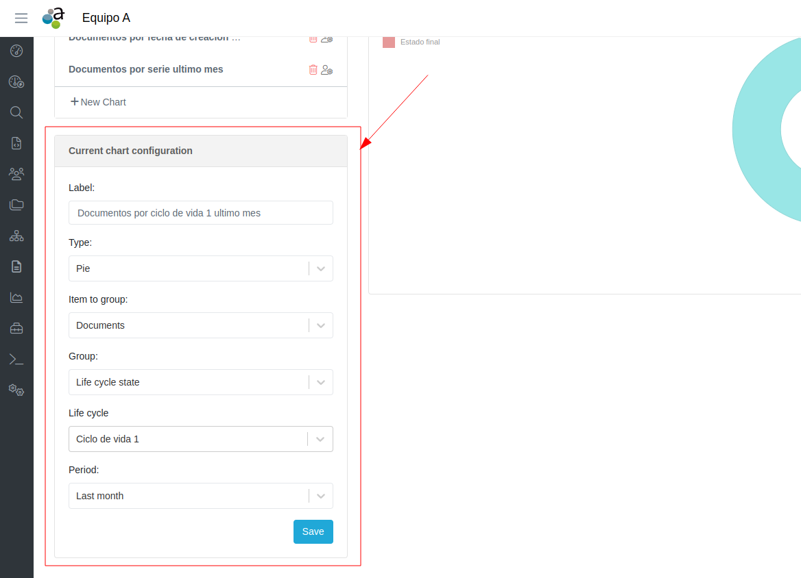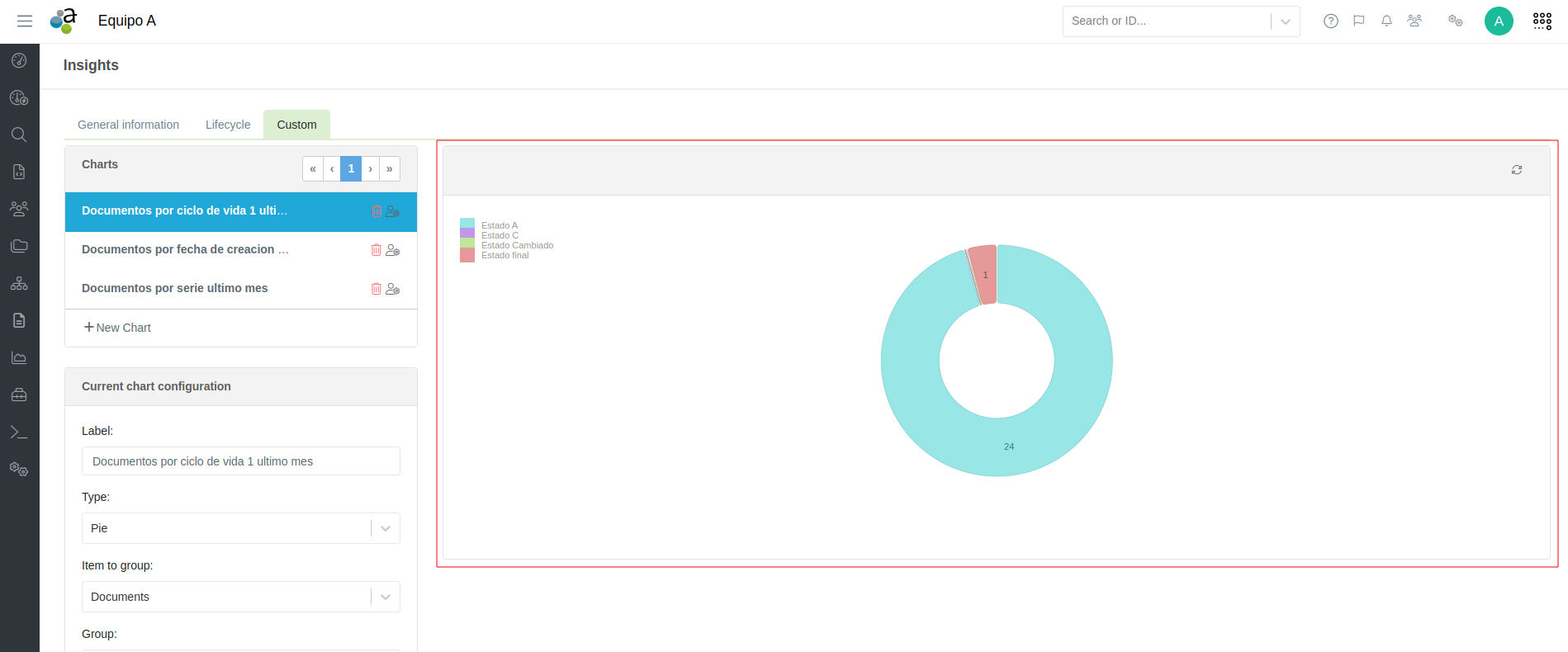 Athento allows you to create custom charts in order to insert statistics in a customized dashboard.