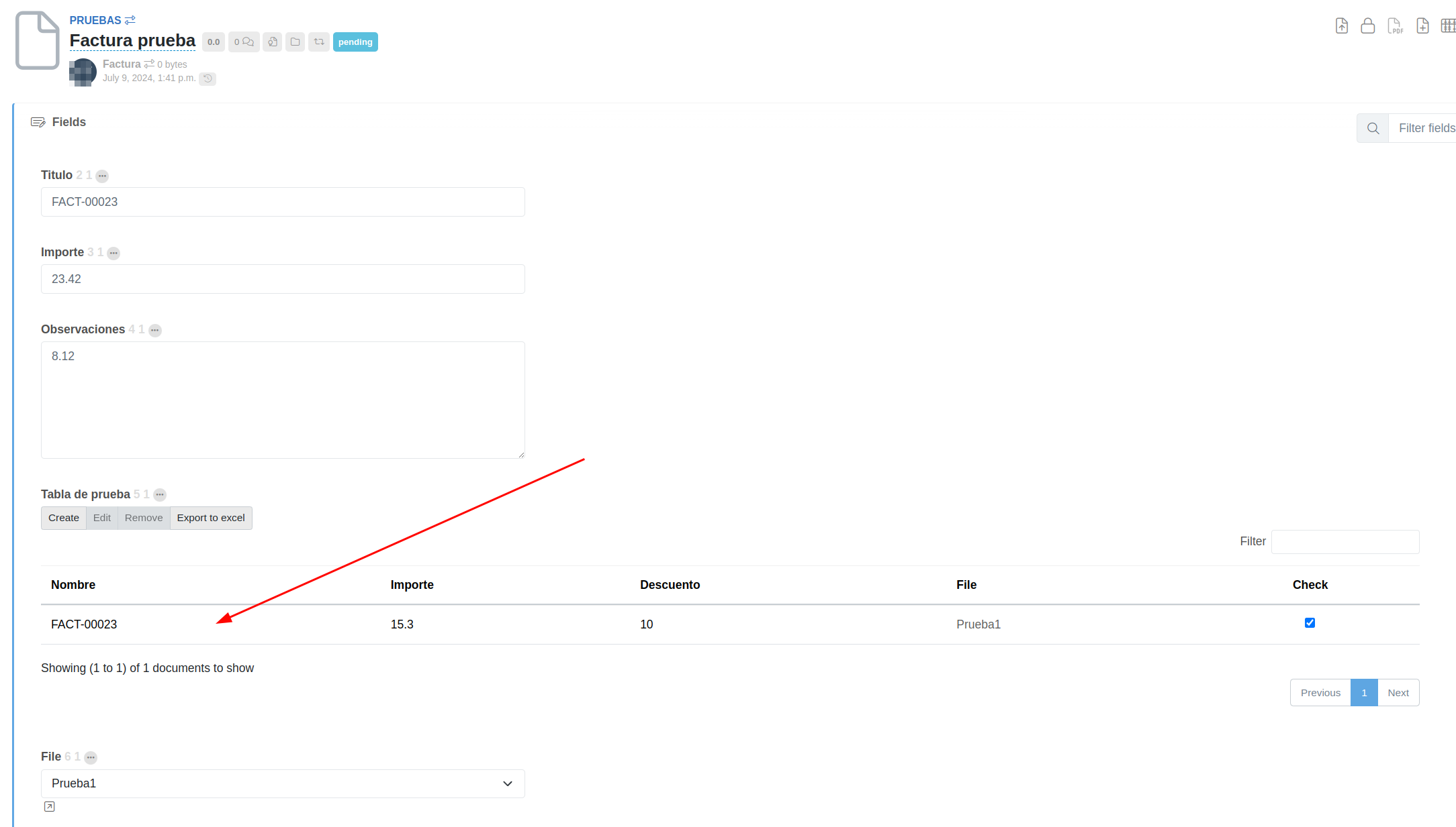 Athento allows to create rows in an item table from document fields with their values through the following operation: