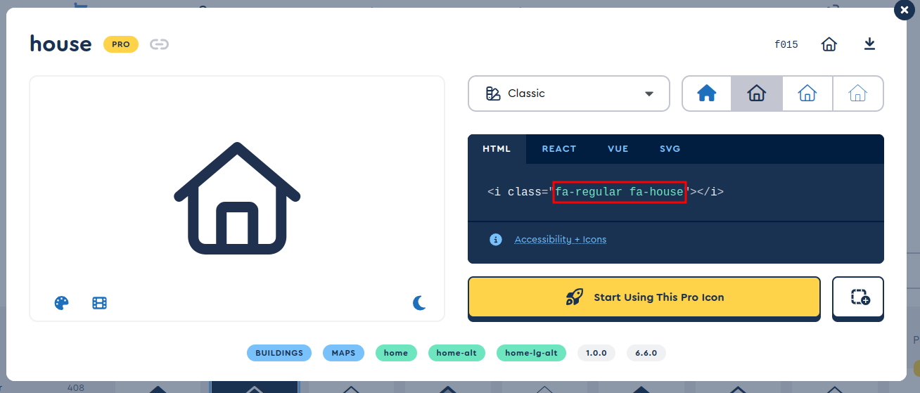 In addition, you can add a Font Awesome icon. To do this, click on “Add icon” to display a field. This field allows you to type an icon found in Font Awesome. To search for the icon, click on the link shown in the field and type what you want to display. Once you have found the icon, click on it and copy what comes in “class”.