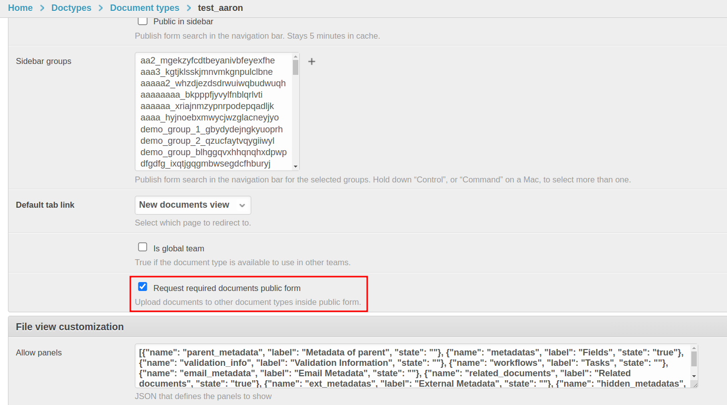 From a public form, external users can upload the documents marked as required in the form configuration. To activate this functionality, you must access the advanced administration of the form. Find the option “Request required documents public form” and activate it.
