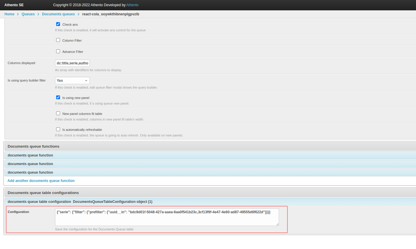 To achieve this, access the advanced queue management. Specifically, this configuration is found under “Documents queue table configurations” in the “Configuration” attribute.