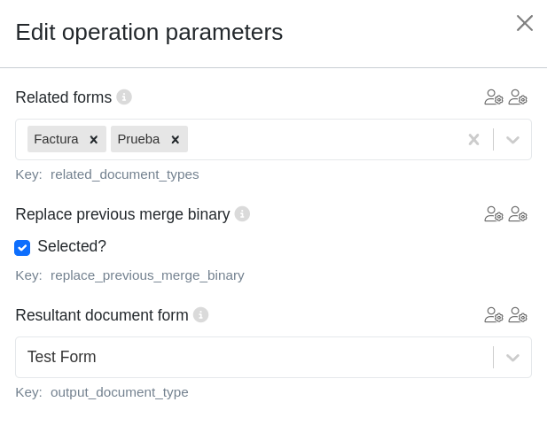 - Related forms: Indicates the related documents' documentary types whose binaries will be taken to perform the merge and conversion.