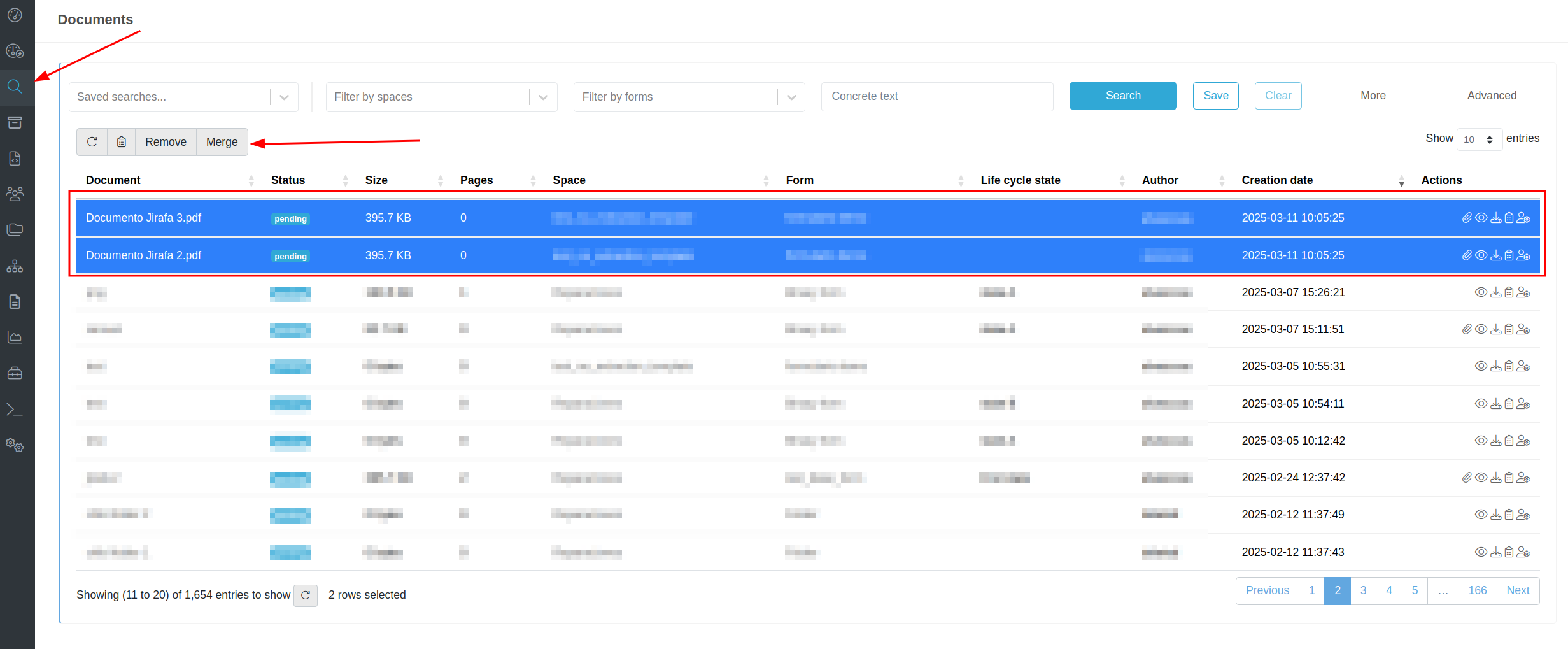 Athento allows you to combine documents from the advanced search. To do this, the first thing to do is to access the advanced search from the sidebar. Once you have accessed it, you have to select the documents taking into account the following: