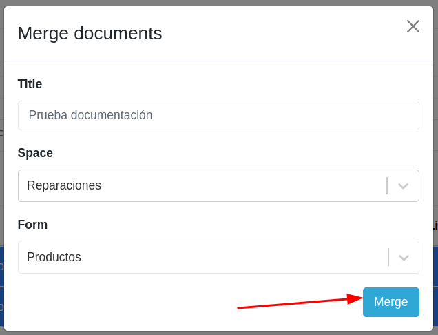 Once they have been selected, click on the “Merge” button. This will open a modal with the following fields: