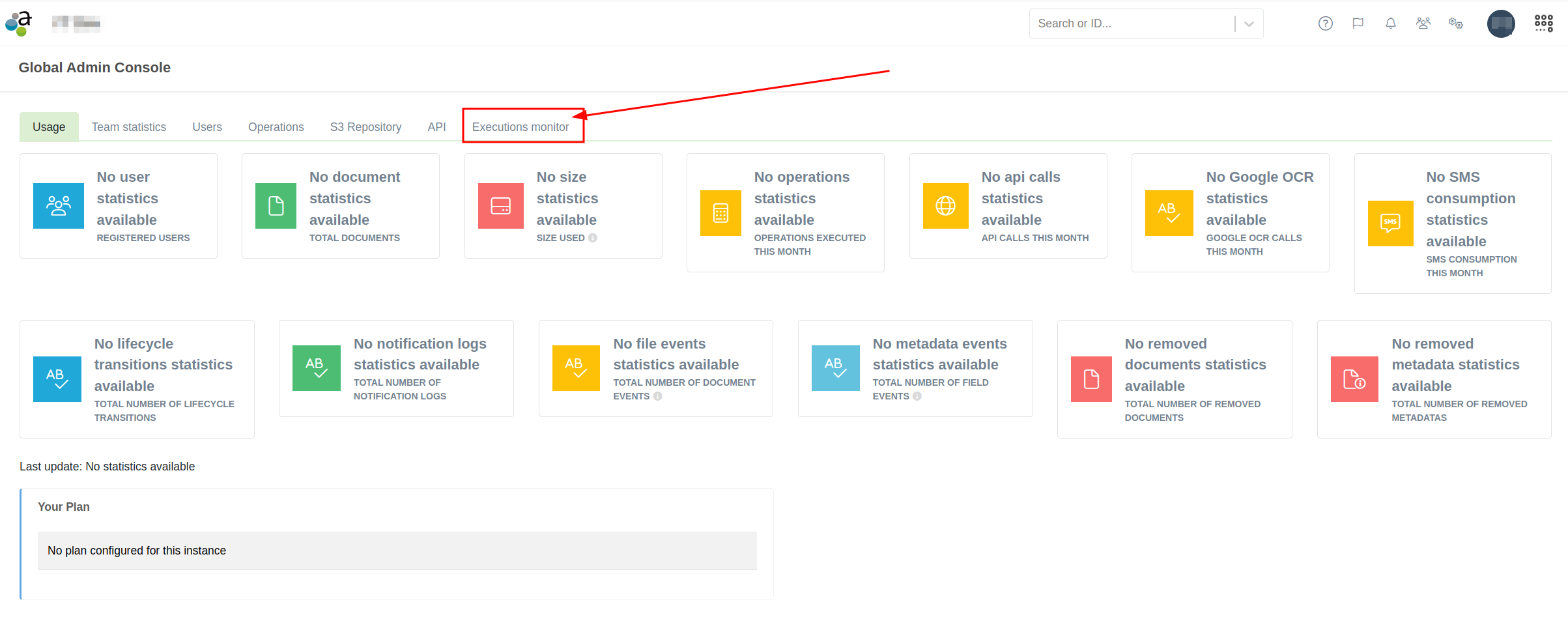 In this section you can see the information available on the different types of executions in the instance.