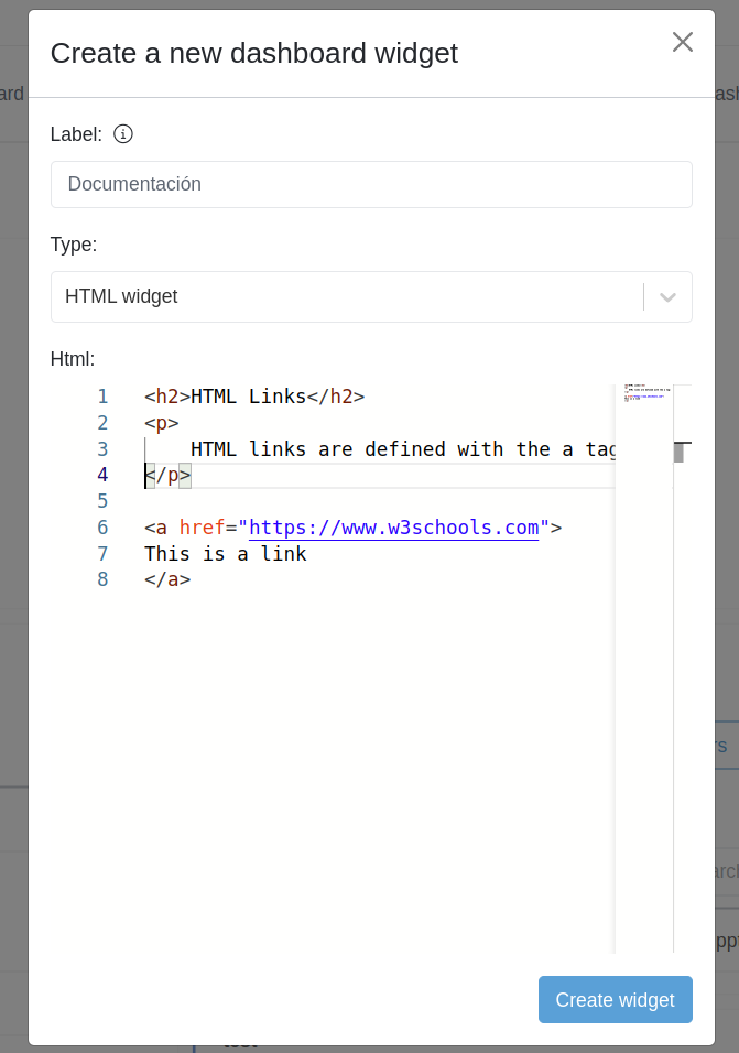 Add an HTML widget to a dashboard