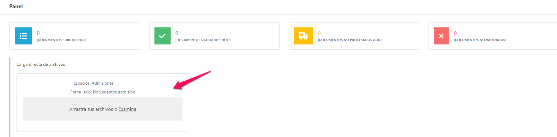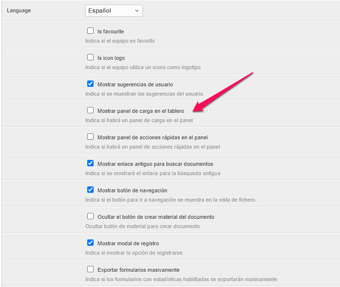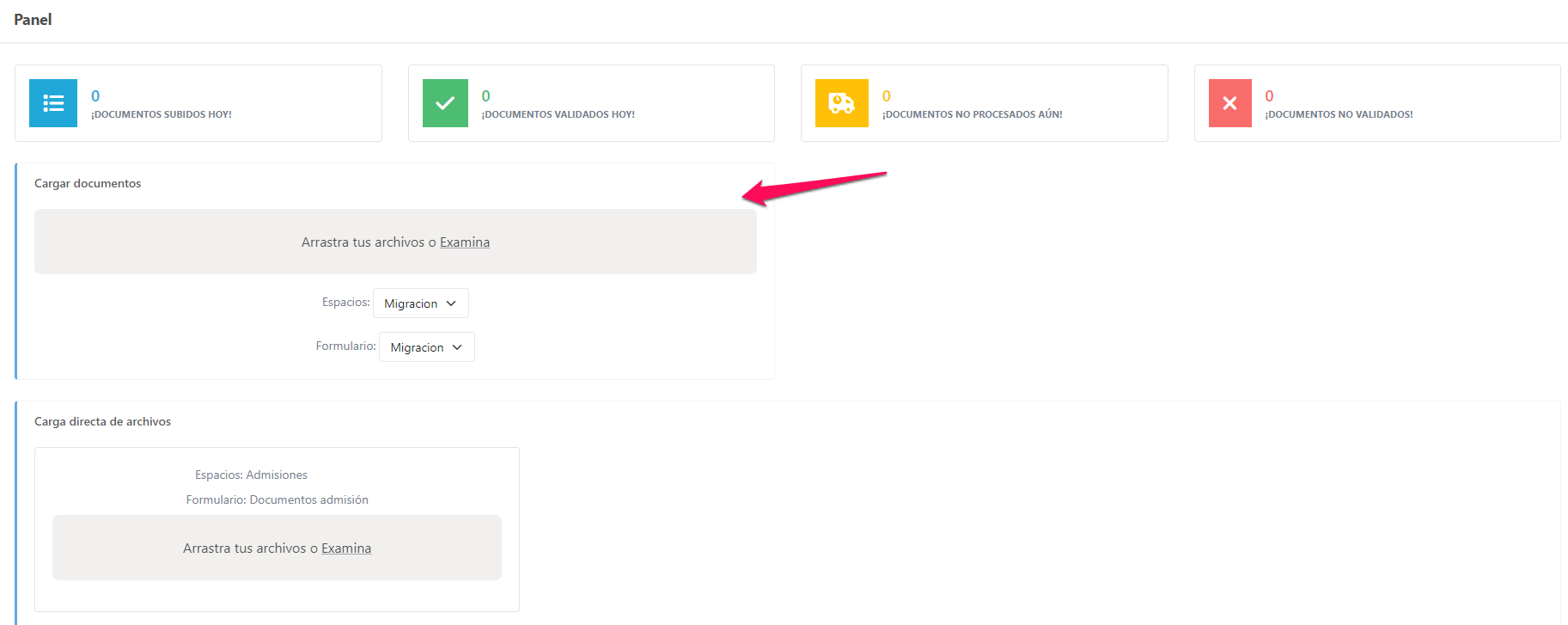 From the space configuration it is possible to enable a quick document loading area on the dashboard.