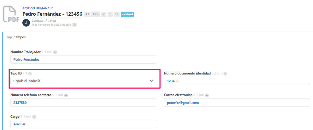 Documents tab from the form: