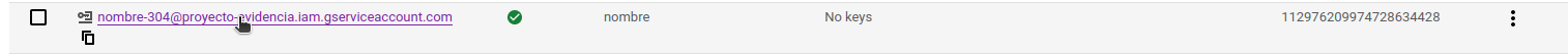 5.- By clicking, we enter the service account created and in the Keys section a new JSON key should be created.