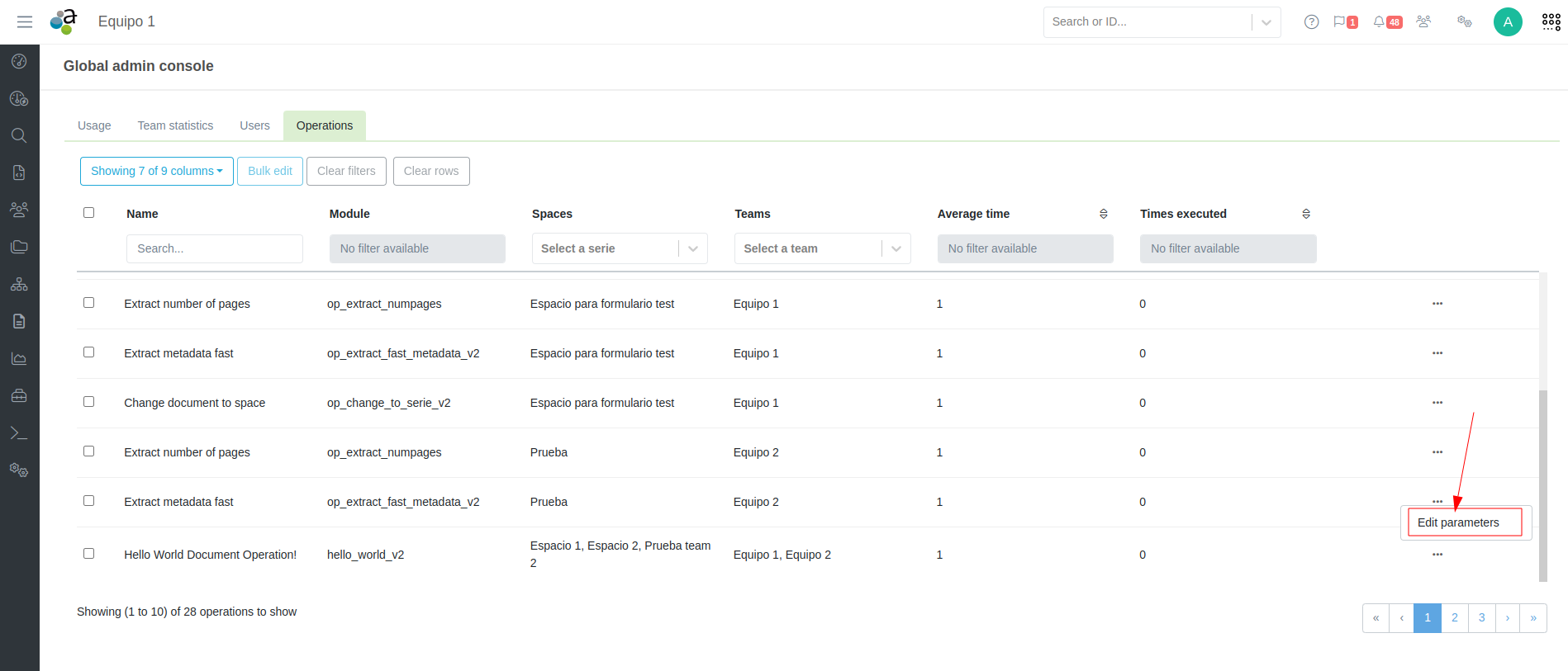 Athento permite editar los parámetros de las operaciones desde la Consola de Administración Global de Athento.