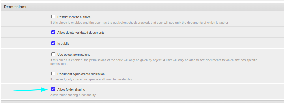 Para usar esta funcionalidad, debes activar la opción "Allow folder sharing" desde la administración avanzada del espacio.