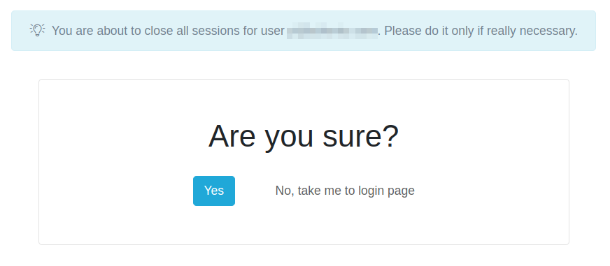 Una vez confirmado, se le informará que ha sido efectivo el cierre de todas las sesiones para dicho usuario, y tendrá la posibilidad de volver a la pantalla de inicio de sesión para acceder a su usuario.
