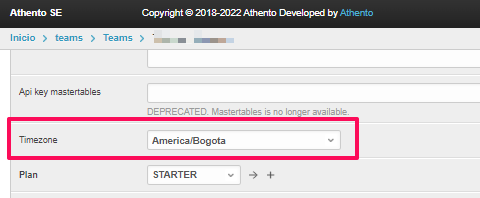 Por ejemplo para Colombia, se selecciona America/Bogota