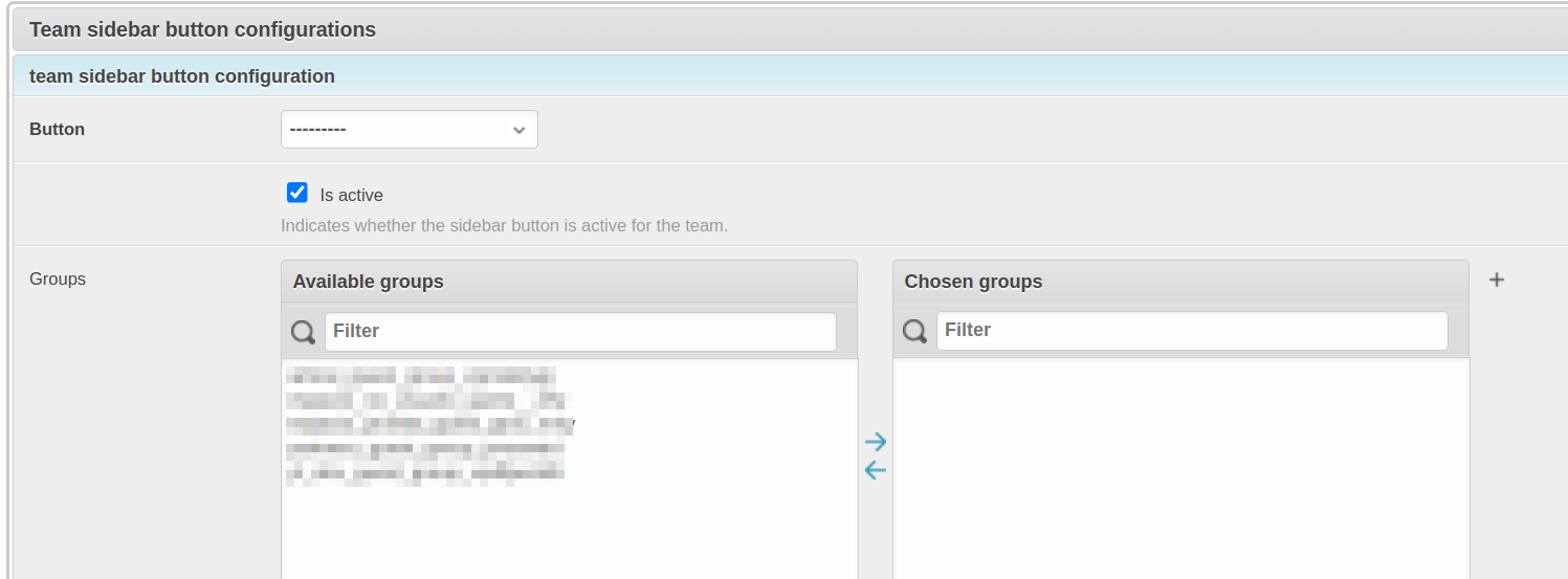 En caso de querer mostrar un menú solo a grupos específicos, puedes utilizar la opción Groups. La opción Is Active debe estar marcada. Simplemente, busca y selecciona los grupos a la izquierda. Con las flechas, mueve hacia la derecha los grupos. Los grupos seleccionados verán el menú o botón indicado.