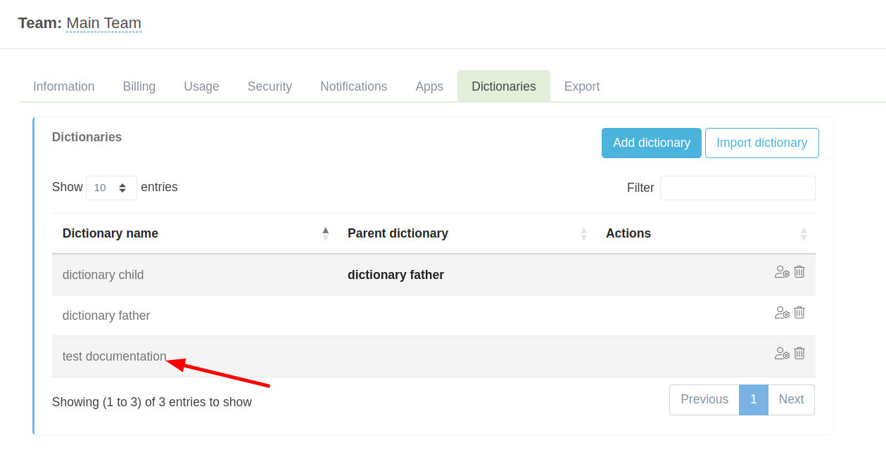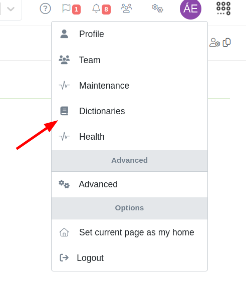 Para poder ver historial de un diccionario, accede al menú "Dictionaries".