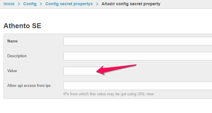 En este caso es necesario crear el Config Secret Property para ello se debe ir a la administración avanzada y añadir un nuevo config secret property, diligenciando los siguientes parámetros: