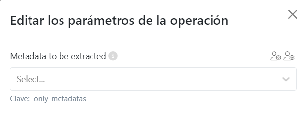 Un proceso, puede que requiera que únicamente se realice la extracción de un metadato específico, para ello, se ha de editar la configuración de la operación: