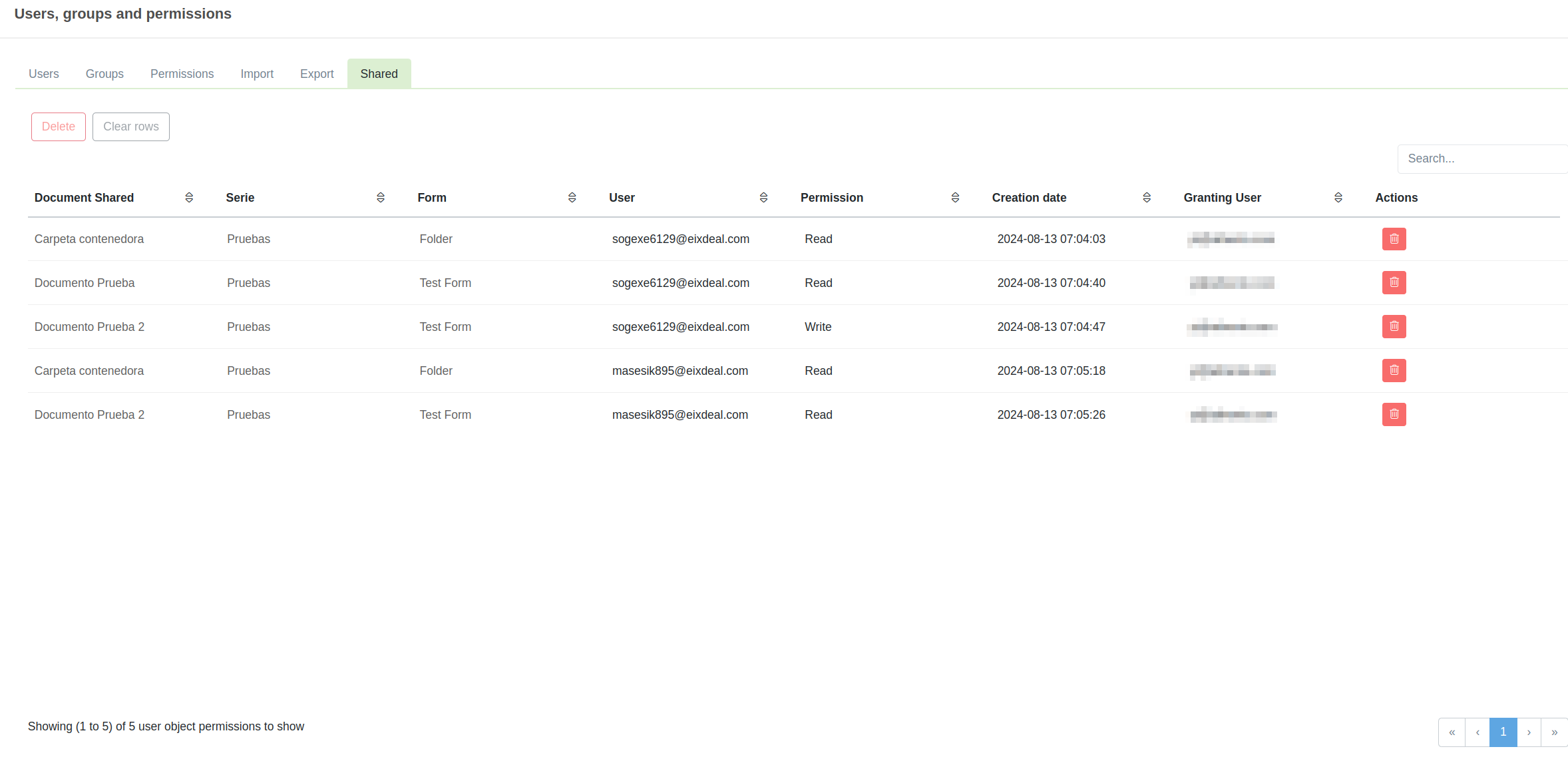 - Permission/Permiso: Permiso otorgado al usuario sobre el documento.