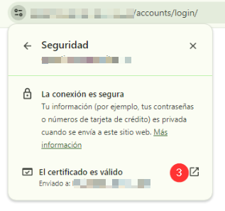 2. En la casilla de diligenciamiento de la URL, ve a la opción "Consulta la información del sitio" y hacer clic en la opción "La conexión es segura"