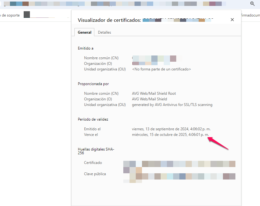 Finalmente, se mostrará el visualizador de certificado donde se podrá identificar la fecha de emisión y la fecha de vencimiento: