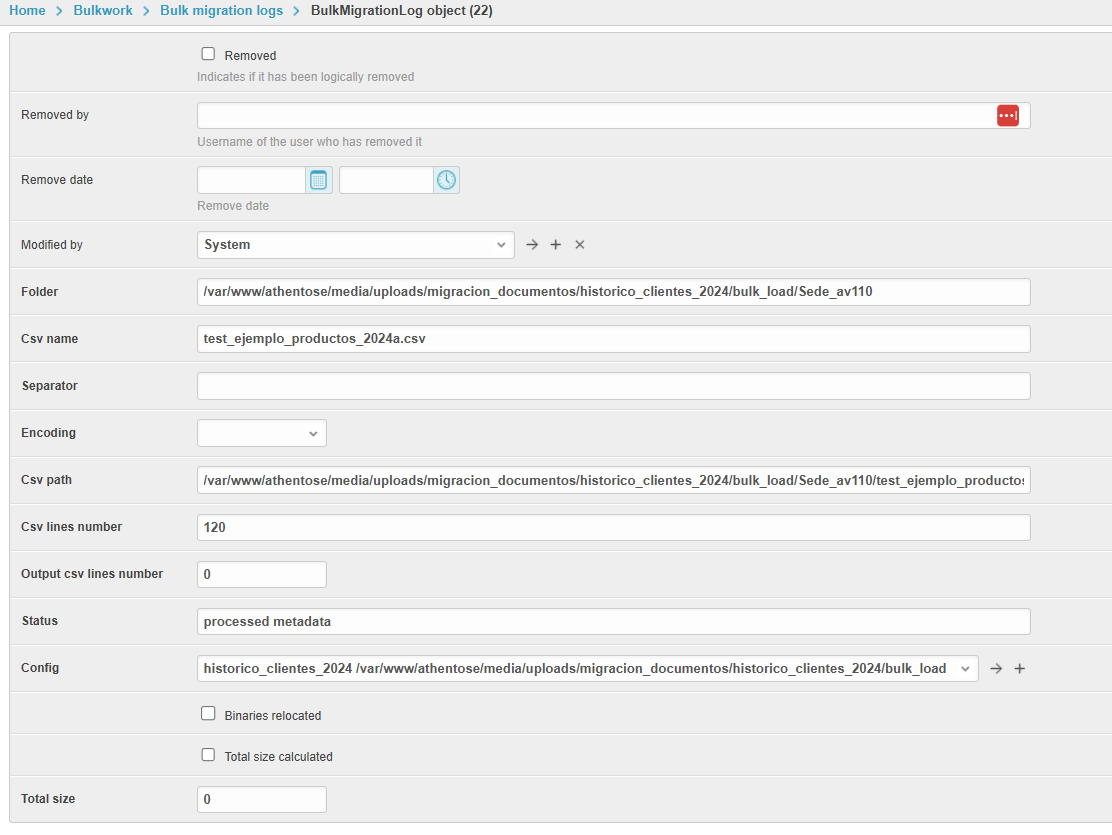 - Config: Bulk migration config al que pertenece la carga