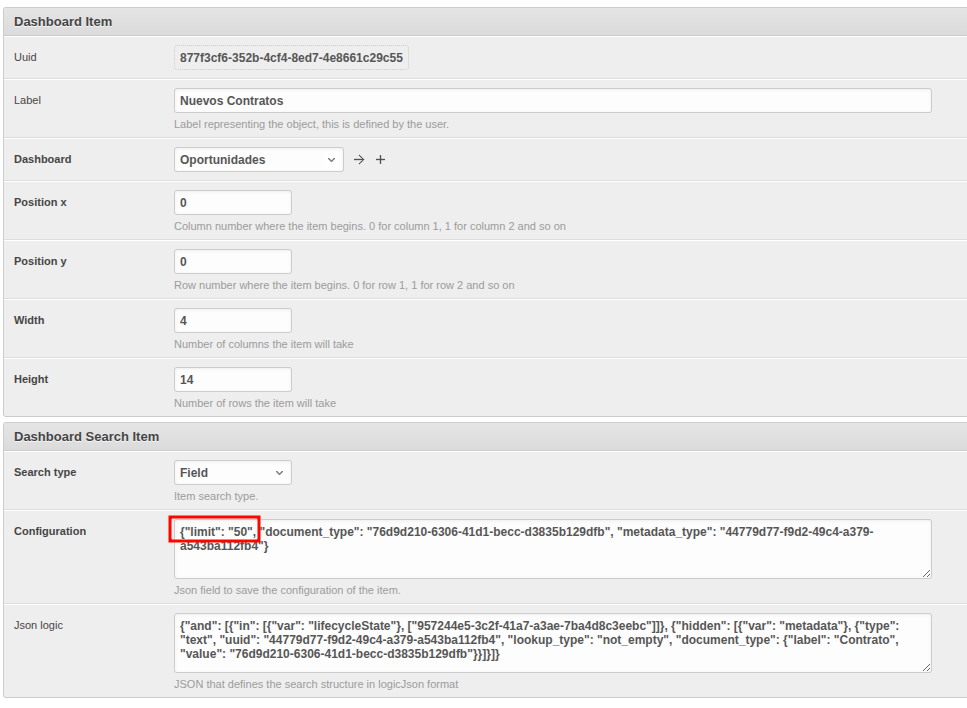 Para modificar el límite del resultado de la búsqueda hay que acceder a la configuración avanzada y modificar el parámetro "Limit".