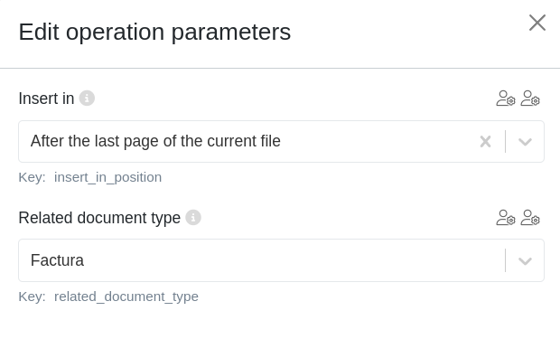 - Related document type: Indica el tipo documental del documento relacionado que se concatenará al actual.
