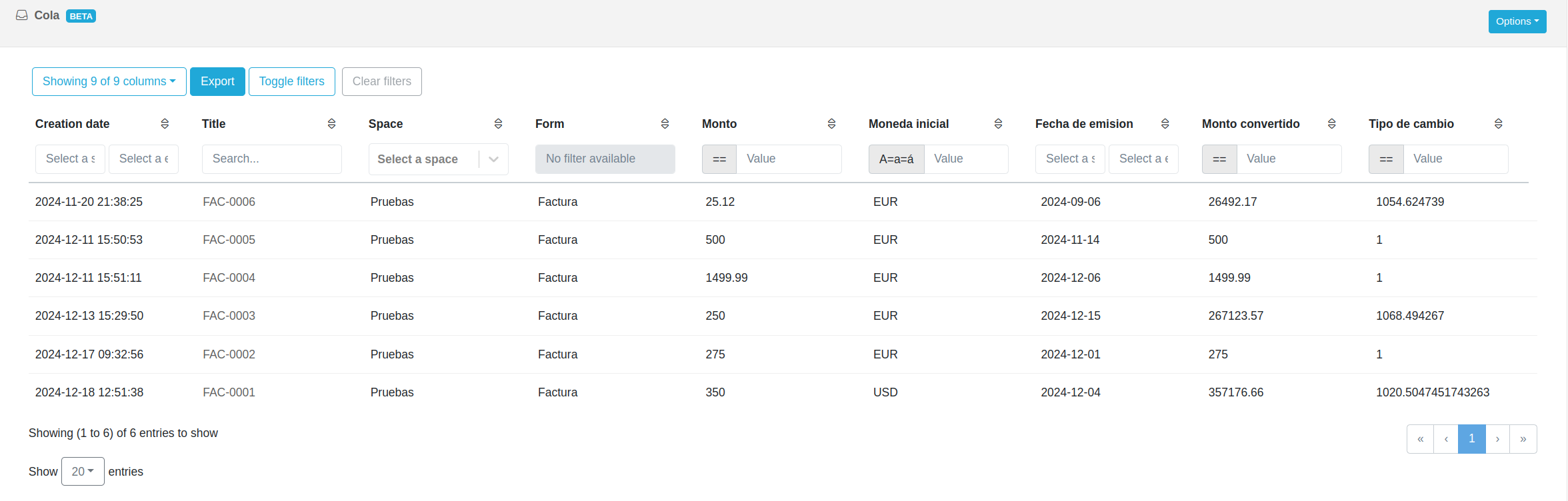 Al tener habilitada esta opción, podremos constatar que las columnas que hemos seleccionado para nuestra bandeja, se adaptan al ancho de la tabla:
