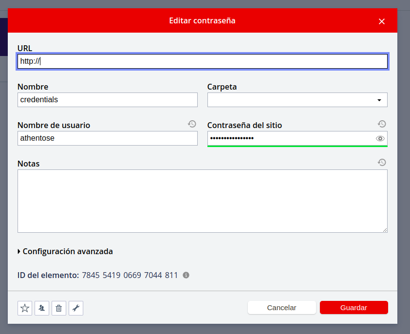 Si el nombre de las credenciales en LastPass es credentials, la configuración sería la siguiente: