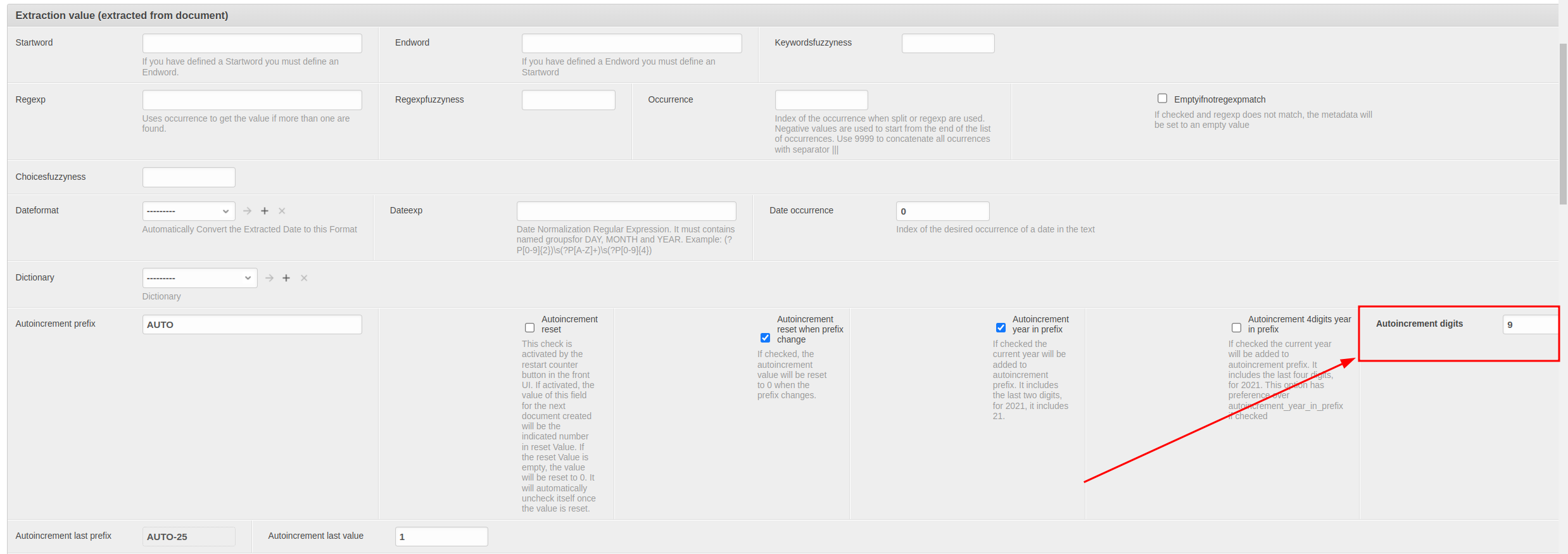 - Suffix autoincrement: Campo que se añadirá al final del incremental.