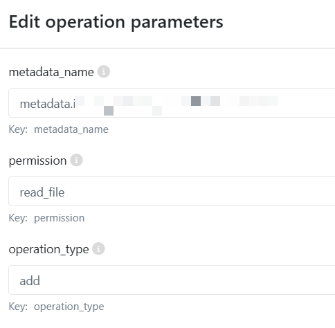 6. En el espacio activar permisos por objeto y el run operation sobre el metadato.