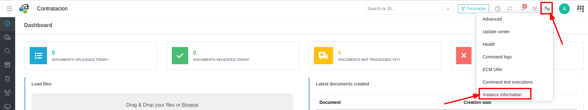 Esta información podremos consultarla a través del engranaje situado en la parte superior derecha, donde encontraremos una opción "Información de la instancia".