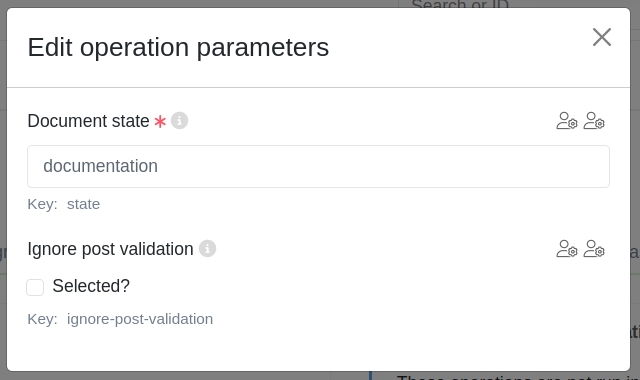 Athento permite cambiar el estado de un documento mediante una operación. Para ello hay que instalar la operación op_change_state_v2. La operación tiene dos parámetros para configurar: