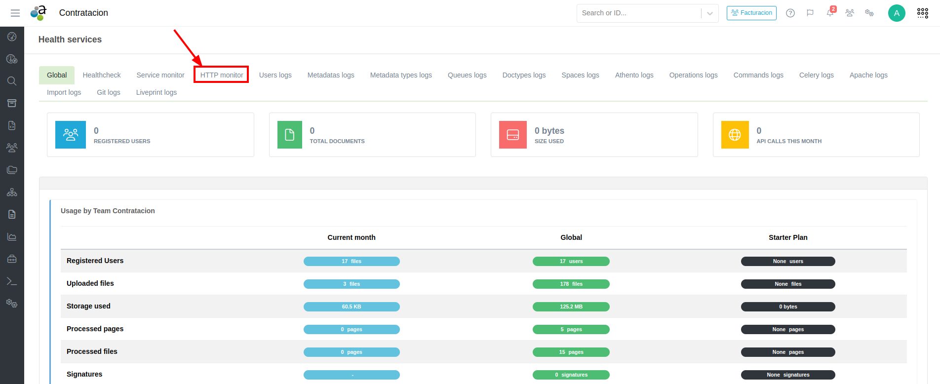 Athento permite monitorizar las llamadas HTTP de la instancia.