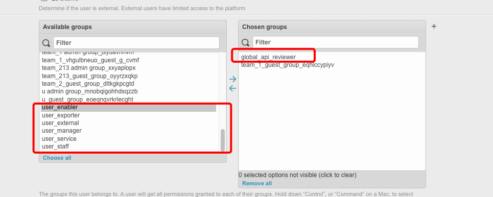 Una vez añadido, los usuarios que pertenezcan a ese grupo tendrán ese o esos roles (en el caso de la imagen, tendría el rol de global api reviewer)