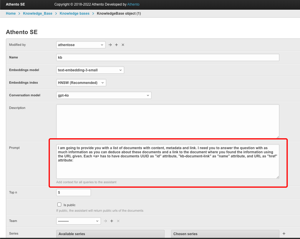 Además, el prompt del KB debe incluir la información de que cada etiqueta <a> con un atributo "id" que tenga el UUID del documento, un atributo name con el valor "kb-document-link", y un atributo "href" con la URL del documento, por ejemplo así: