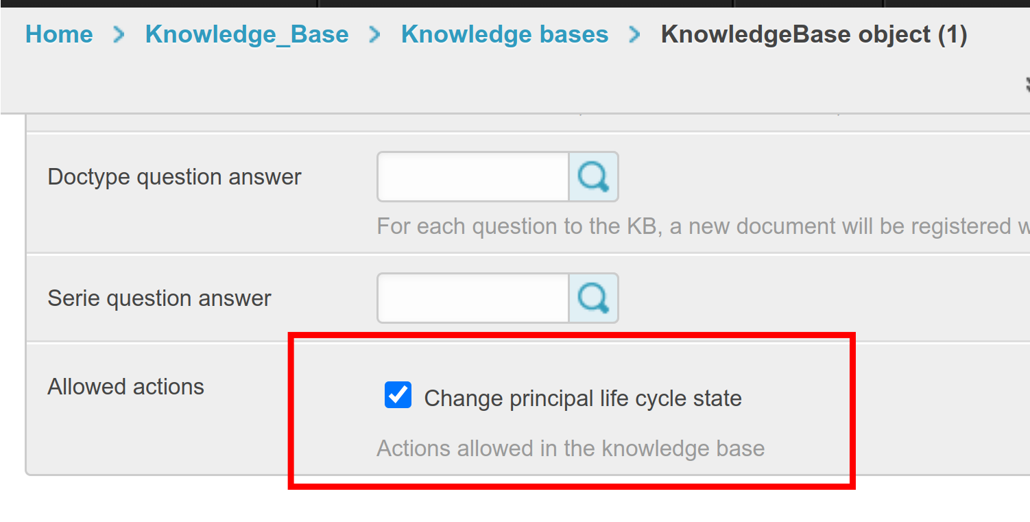 Para que el ciclo de vida principal nos aparezca en el chat del Knowledge base lo único que hay que activar en la administración avanzada del knowledge base que se quiera la opción 'Change principal life cycle state'