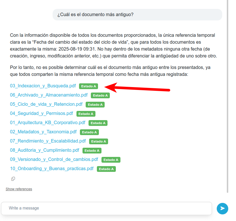 Con estos cambios aplicados, cuando se utilice el KB lo podremos utilizar utilizando la etiqueta que aparece al lado de cada documento.