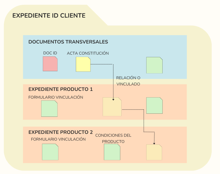 Son todos aquellos documentos que pueden reutilizarse en varios productos o procesos, además son los que identifican cómo tal al cliente, cómo por ejemplo; Documento de identidad, Certificación de ingresos, Declaración de impuestos, entre otros.