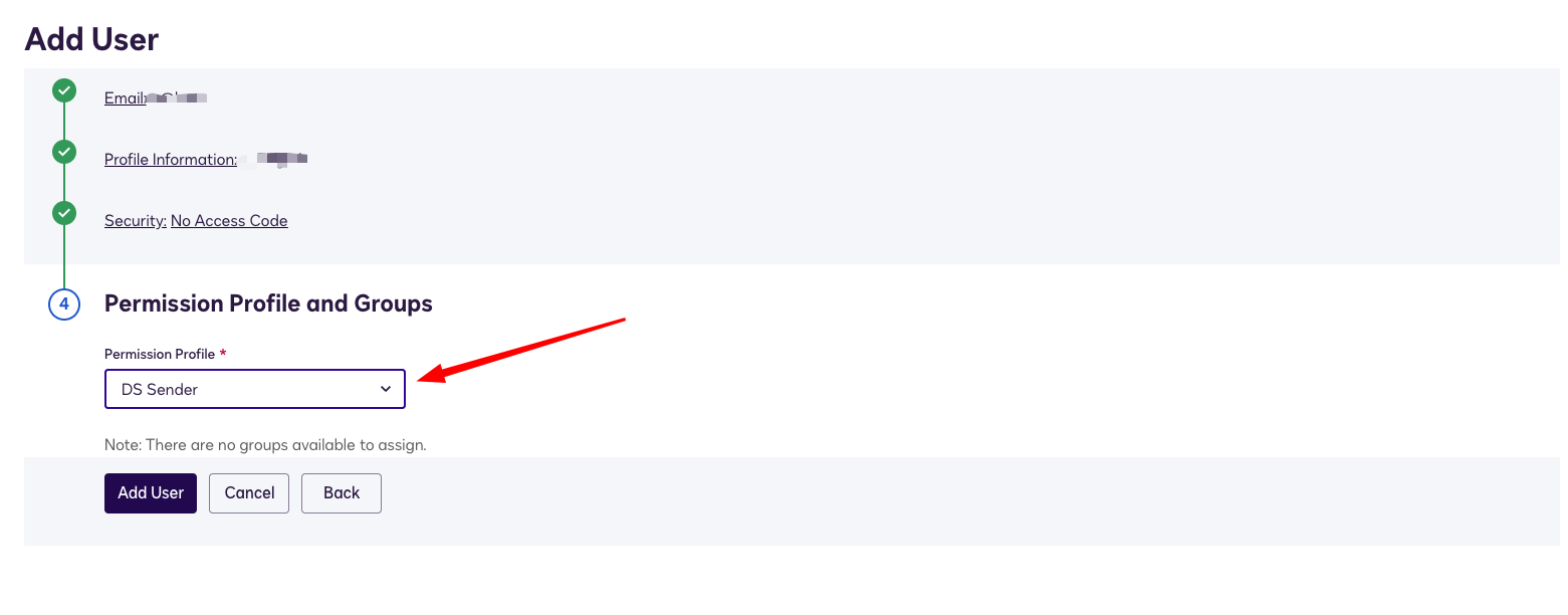 Cuando llegues al paso 4, debes elegir el rol DS Sender: