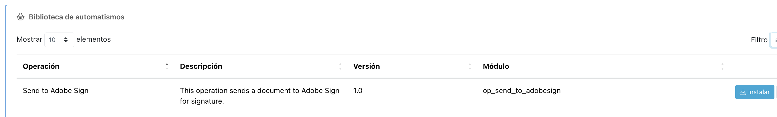 Posteriormente, activar la operación de envío a AdobeSign y usarla en la parte del proceso donde se necesita la firma.