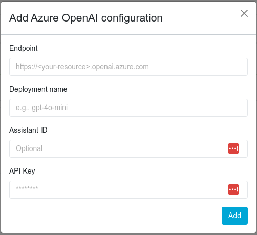 Para habilitar la conexión con Azure OpenAI, Athento solicitará los siguientes parámetros:
