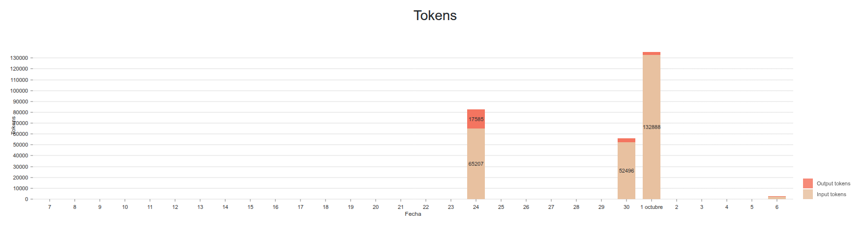 En la segunda gráfica veremos el número de tokens de entrada y de salida que se han intercambiado con Athenea.